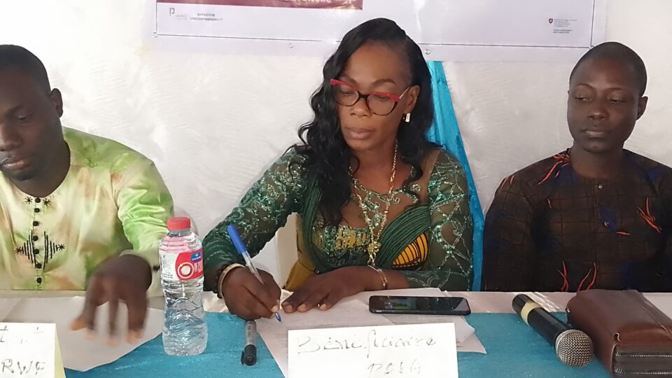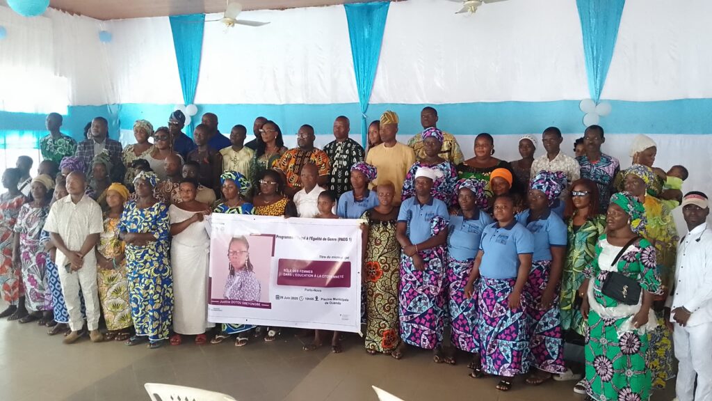 Ce samedi 28 juin 2025, Justine Dotou GBEYONGBE a réalisé son mini-projet à la salle de conférence de la piscine municipale de Porto-Novo, entourée de ses coachs, du représentant de son parti politique, du représentant du CRWF (Consortium RIFONGA-WANEP-FENEP) et des personnes ressources dont le coordonnateur de son parti politique FCBE dans la 19ème circonscription électorale en la personne de Joël AHOUSSINOU. Ce projet s’inscrit dans le cadre du Programme d’Appui à l’Égalité de Genre (PAEG), financé par la Coopération Suisse avec l’appui technique de Particip GmbH.