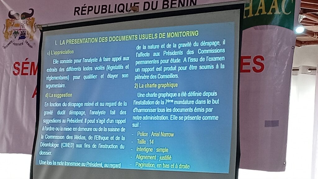 Représentant le Président de la HAAC, le Conseiller Armand HOUNSOU, Président de la Commission des Médias, de l’Éthique et de la Déontologie, a insisté sur la portée stratégique de cette formation. Selon lui, l’amélioration continue des compétences internes est indispensable pour renforcer la crédibilité de l’institution, accompagner efficacement les professionnels des médias et garantir une régulation respectueuse de l’éthique et de la protection du public. Une démarche qui témoigne de la volonté de la HAAC d’adapter ses méthodes aux exigences d’un paysage médiatique en constante évolution.