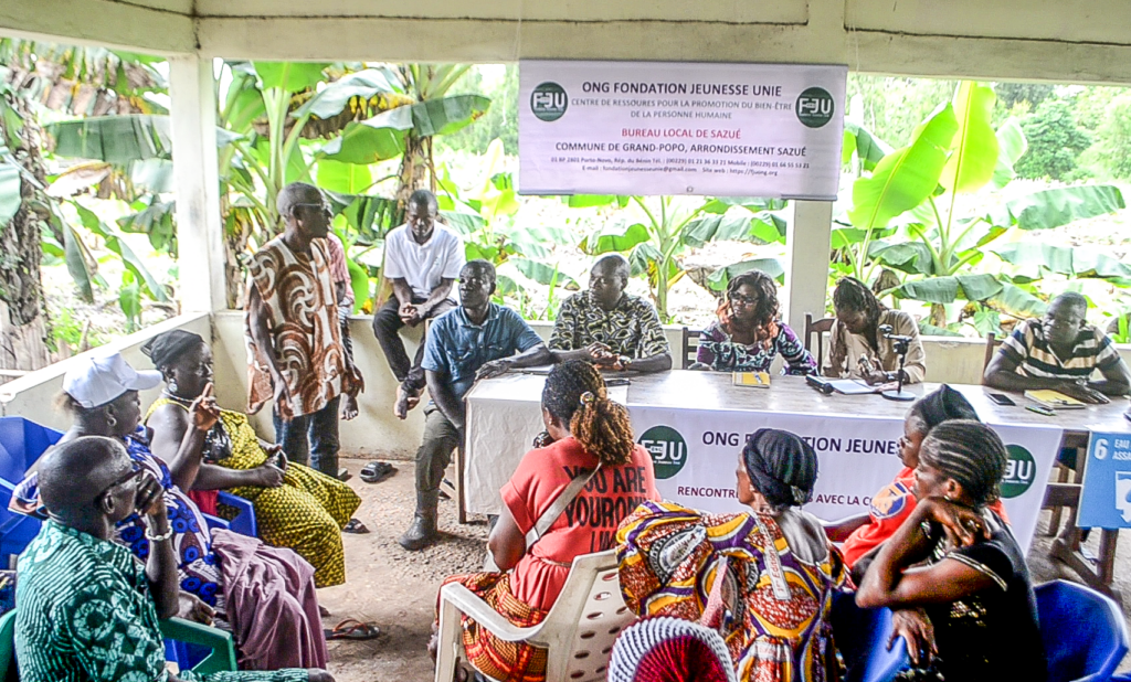 Le forum communautaire sur l’eau a été ouvert par une cérémonie solennelle en présence des parties prenantes. Dans son mot d’ouverture, Olive HOUNKPONOU, présidente de l’ONG FJU, a insisté sur l’importance d’une démarche véritablement participative. Elle a exhorté les participants à se prononcer sans détour sur la problématique de l’eau à Sazué, convaincue que les solutions durables ne peuvent émerger que de l’implication directe des communautés concernées. Cette approche a été saluée par plusieurs personnes ressources, notamment Pierre AVALEDOHOU, conseiller local à Awamey et Miguel Coffi Koklobo, conseiller local à Sazué, qui ont unanimement reconnu l’originalité et la pertinence de l’initiative.