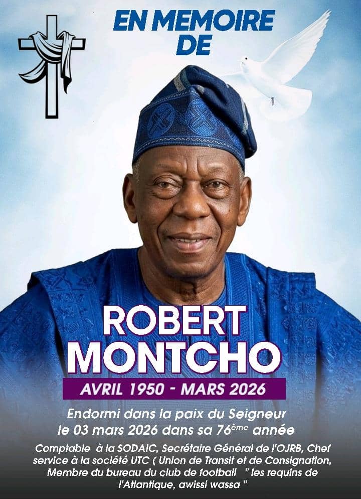 La communauté sportive, professionnelle et sociale béninoise est en deuil suite au décès de Robert Montcho, survenu le 03 mars 2026 dans sa 76ᵉ année. Ce comptable de formation et homme engagé dans plusieurs sphères de la vie publique et associative, laisse derrière lui, le souvenir d’un homme de rigueur, de dévouement et de discrétion.